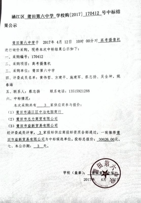 2017年高考监控系统中标结果公示